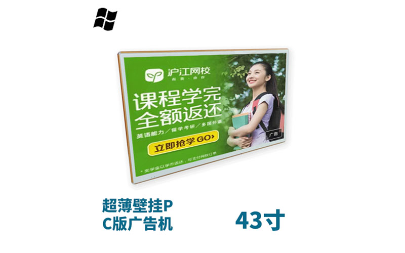 超薄壁掛式43寸液晶廣告機PC版詳情展示支持定時播放功能在酒店、教學、餐飲等領域應用廣泛